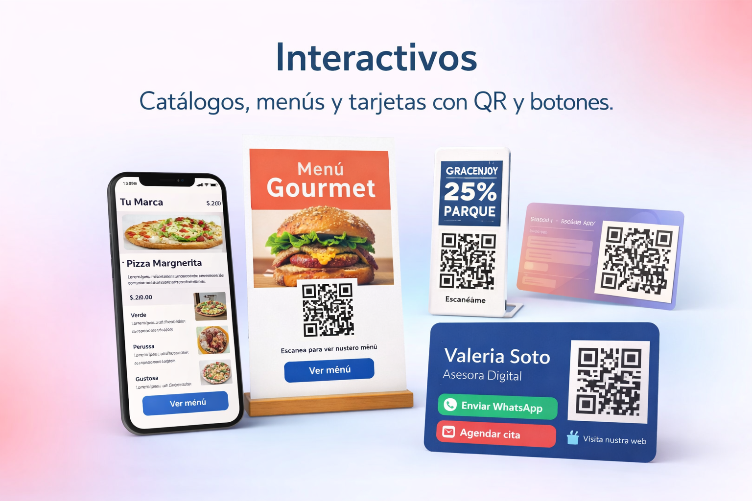 Con 5 años de experiencia, creamos contenido digital profesional. Especialistas en catálogos digitales, menús interactivos, fotografía, páginas web, tarjetas de presentación, imágenes con IA, programación y CRM.